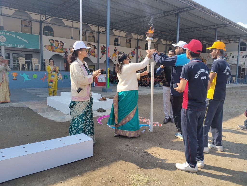 Our School Annual Sports Day was gracefully inaugurated by our respected Director, Mrs. Bindu Ma’am, who lit the lamp and hoisted the flag. The ceremony was followed by an energetic and well-coordinated march past by our enthusiastic students, marking a vibrant start to the day’s events.